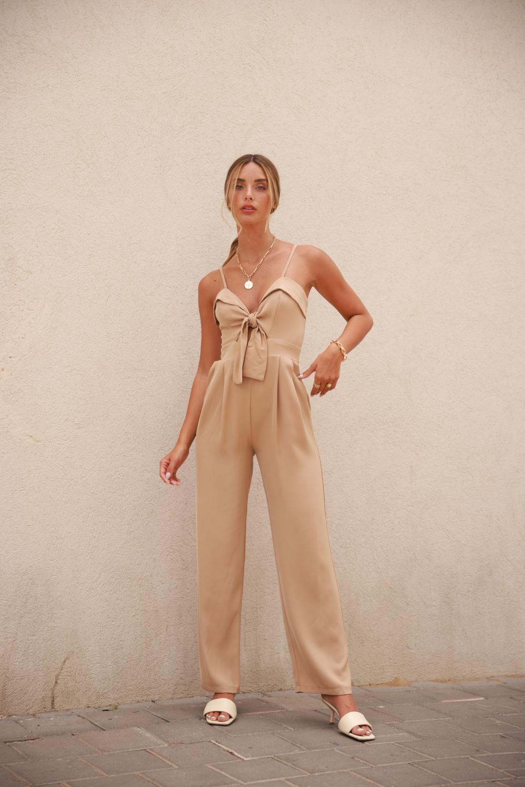 אוברול מיוחד ומחמיא, עוטף ומאריך את הגוף בחלקו העליוI ישנה קשירה שיוצרת מראה של פפיון' בחלקו התחתון הוספנו בחגורה שני פנסים וכיסים .
