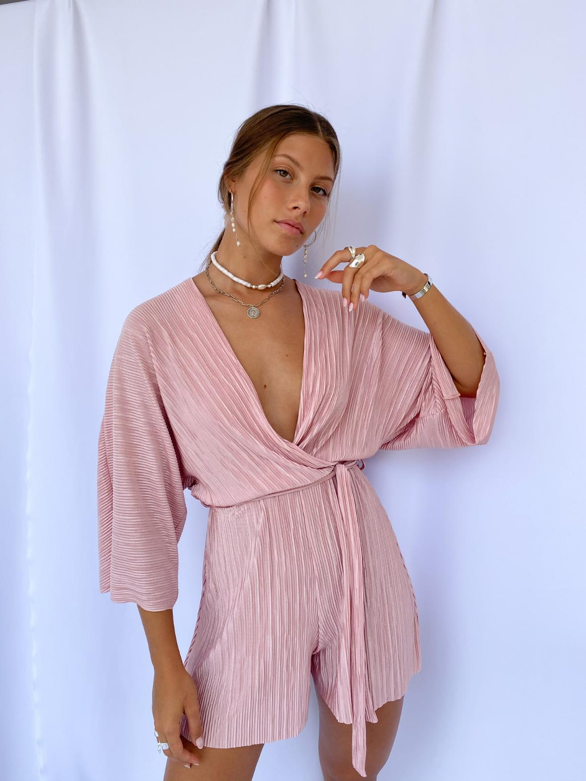 אוברול בגיזרה קלאסית מחמיא ומאריך את הגוף, שרוולים רחבים מחסוף ארוך ומתכוונן